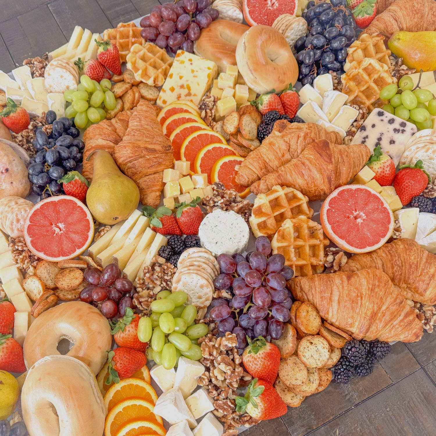 Start your day with our delightful brunch-themed grazing table, featuring: